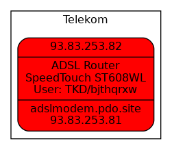 3. label="{ { <wan1> WAN1:93.83.253.82|<wan2>WAN2: 192.168.0.100}|Internet Access Router\nZyxel UGS-50\nUser: admin/(std)|<lan>adslrouter.pdo.site\n192.168.1.1}",
