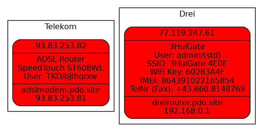 3. label="{ { <wan1> WAN1:93.83.253.82|<wan2>WAN2: 192.168.0.100}|Internet Access Router\nZyxel UGS-50\nUser: admin/(std)|<lan>adslrouter.pdo.site\n192.168.1.1}",